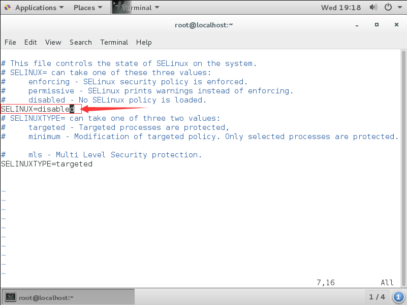 1.使用vim修改系统配置文件,/etc/selinux/config 关闭selinux的服务