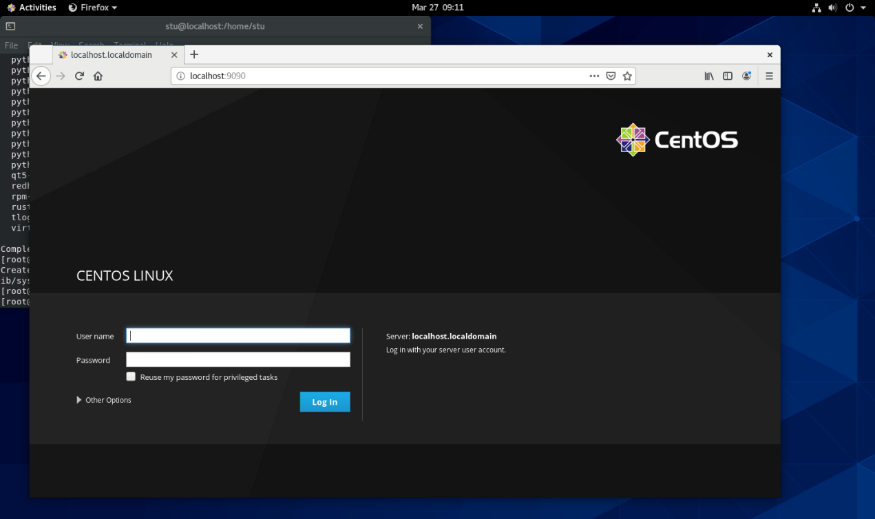 使用浏览器打开 localhost:9090查看页面。使用root用户的用户名和密码登录。
