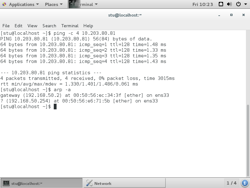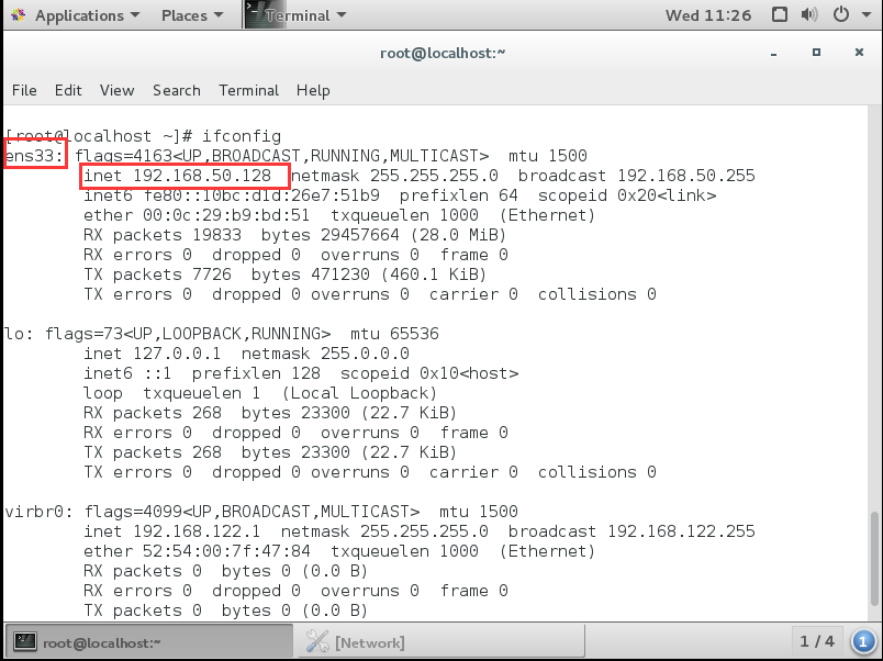 - 输入以下命令,查看结果。此处网卡模式为NAT模式。(截图到实验报告)