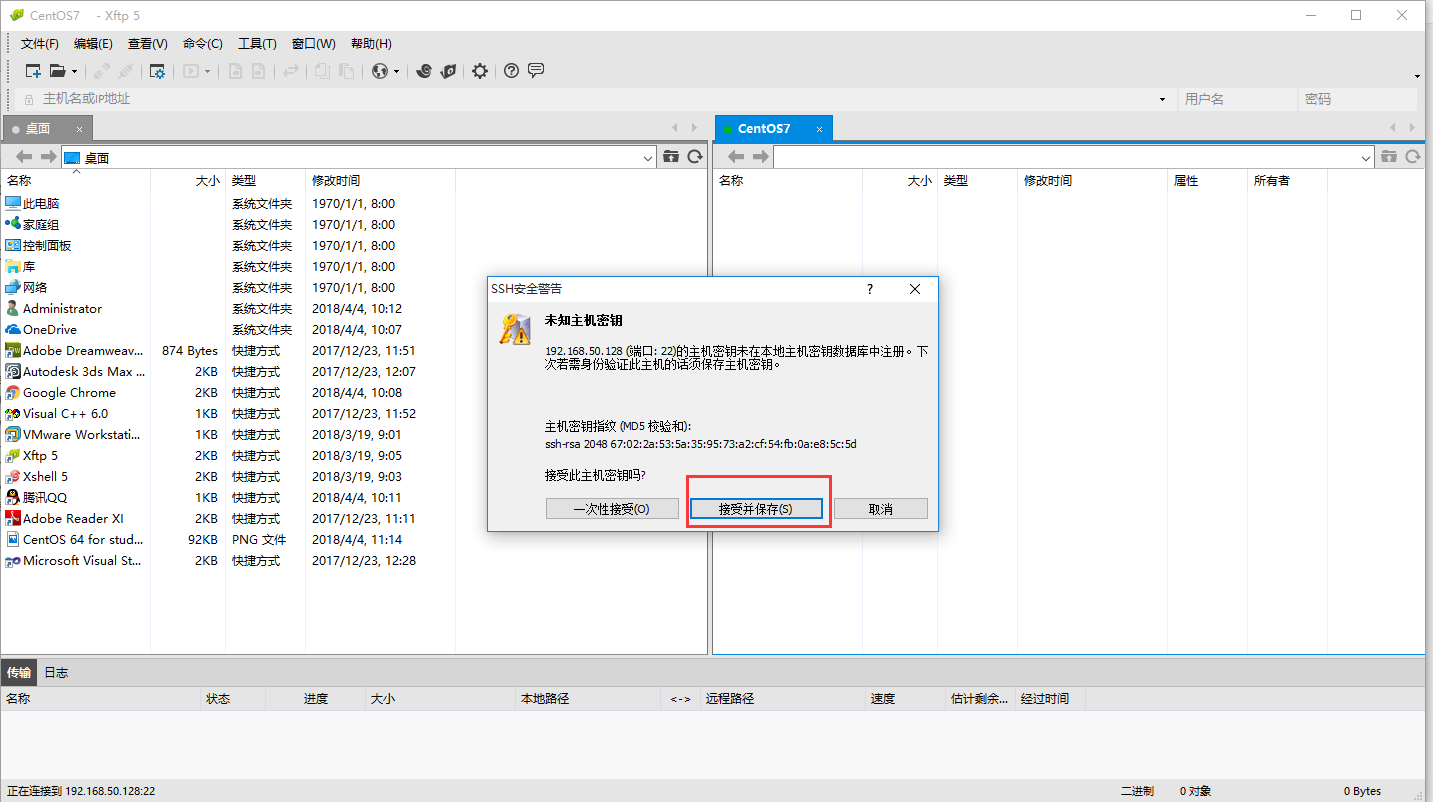 会话框中出现如下所示的连接,点击链接,开始建立SFTP连接